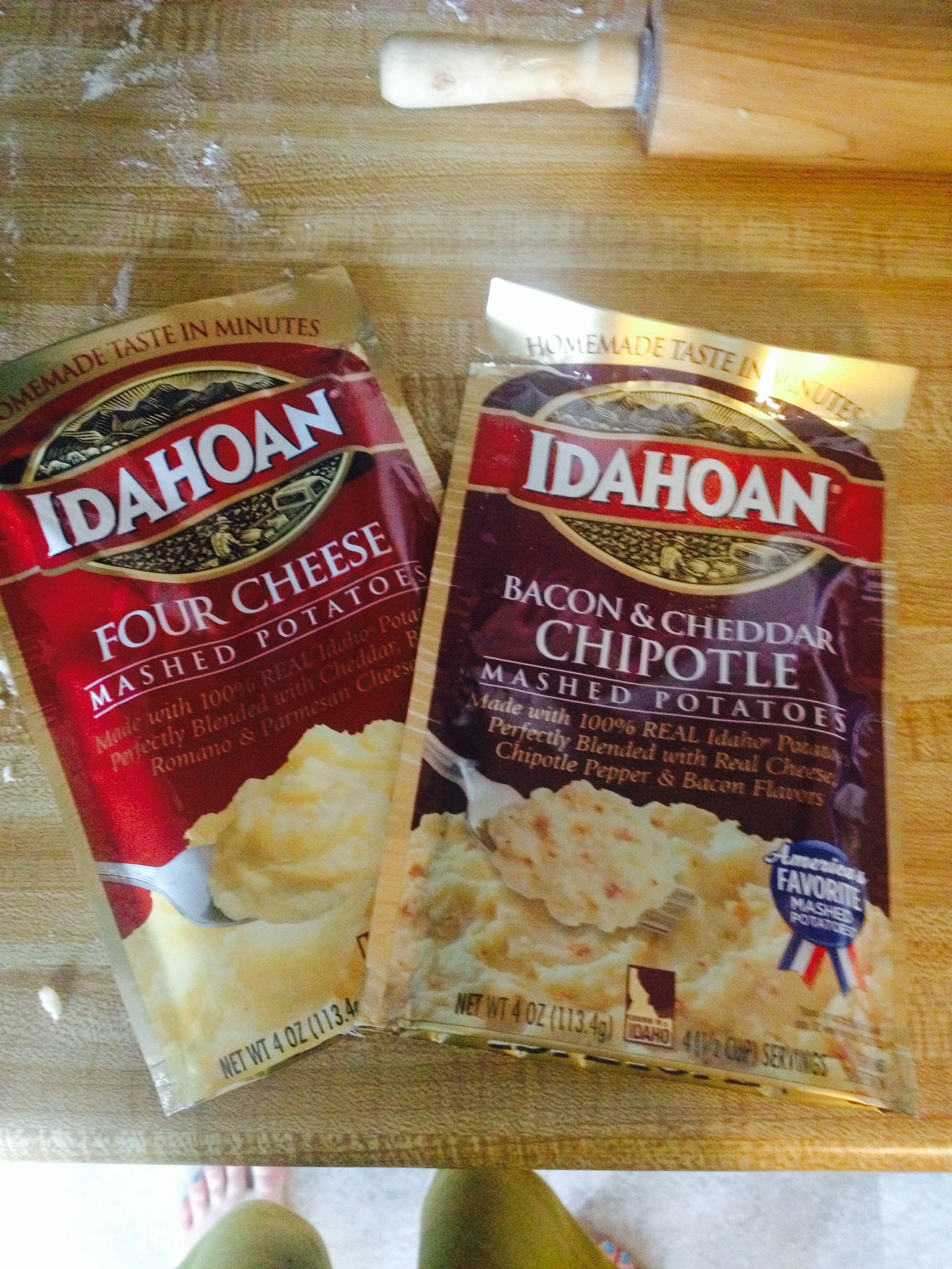Last time I was at my grandma’s house, I saw that she was using instant potatoes for mashed. I gasped. She has, for as long as I can remember been the ultimate Irish woman and makes most things from scratch, including Irish Soda Bread (which is the best out there, but I am most likely a little biased of my grandmother’s cooking). She showed me this brand called Idahoan. I tried them, they were actually pretty damn good. And once I saw the price point of about a dollar for a package, I knew I had to buy them.
