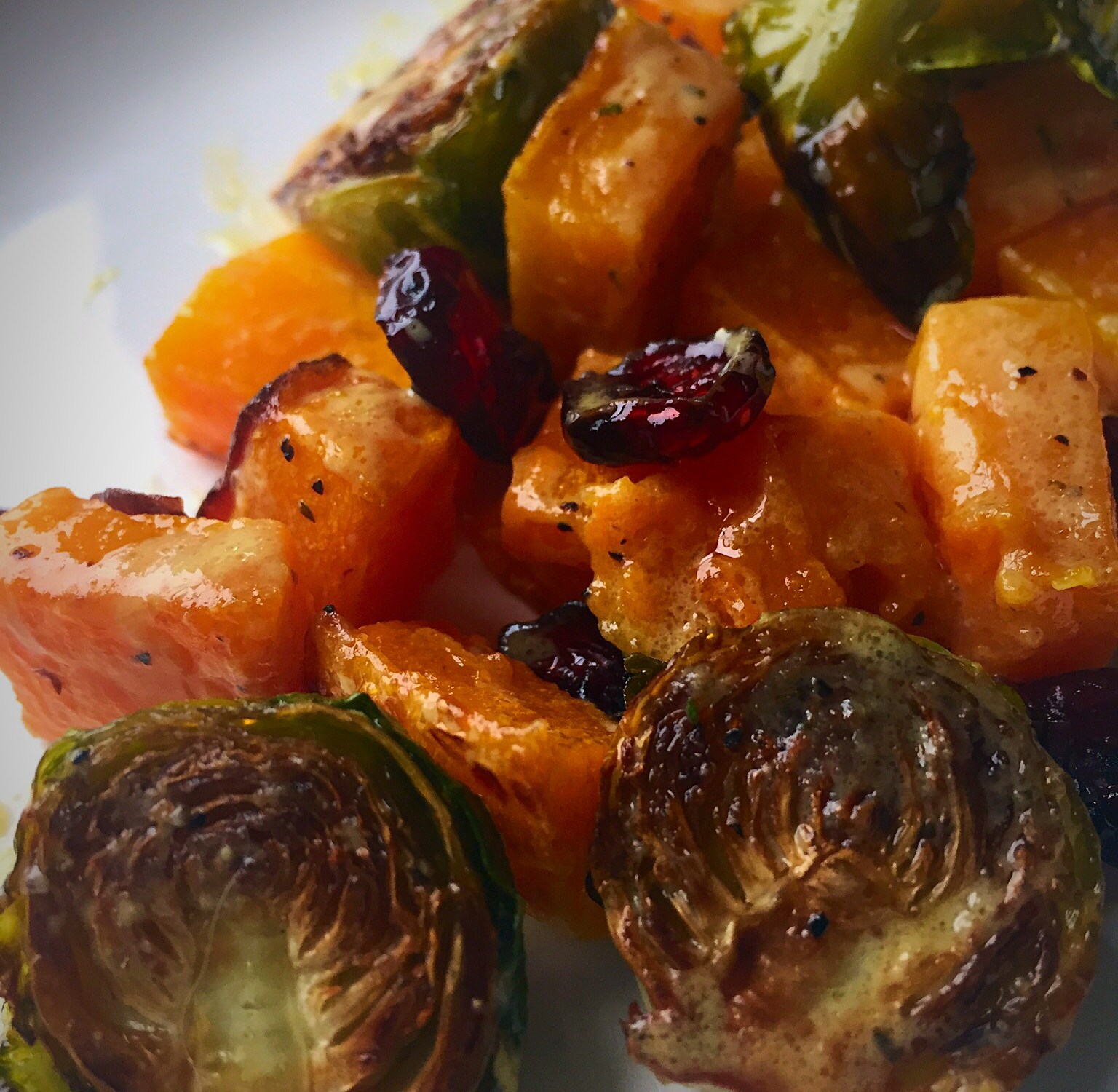 This year, after seeing how cute and silly brussel sprouts were on the stalk at Trader Joes, I knew I had to open my horizons a little. I decided to mix the brussel sprouts with other seasonal varieties and make sure that I did this right. Hence, this recipe. It’s all about the sauce.