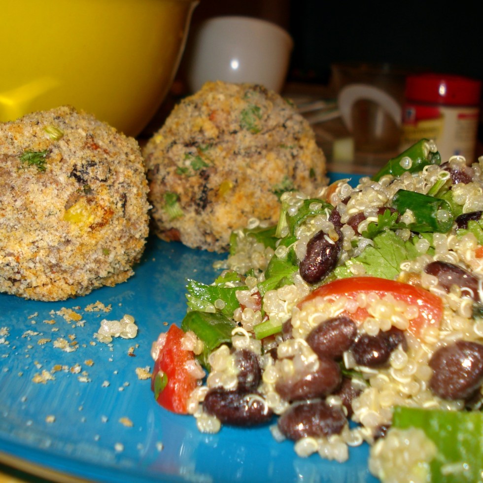 Black Bean Croquettes & Fresh Salsa Served with Black Bean and Tomato Quinoa